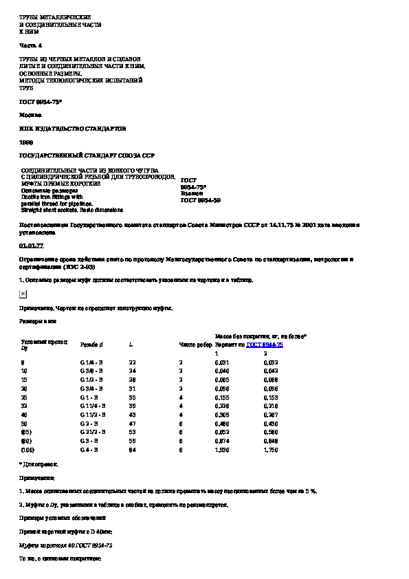• Просмотр в полноэкранном режиме - легко просмотреть документ Соединительные части из ковкого чугуна с цилиндрической резьбой для трубопроводов. Муфты прямые короткие. Основные размеры (без загрузки его на свой компьютер).