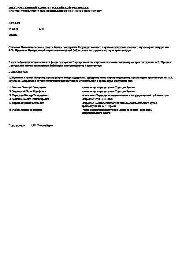 Наша цель состоит в том, чтобы предоставить вам быстрый доступ к содержанию документа О членах Попечительского совета Фонда поддержки Государственного научно-исследовательского музея архитектуры им. А.В. Щусева и Це.