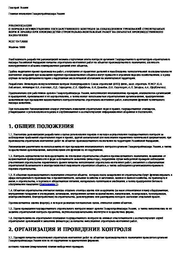 МДС 12-7.2000: Рекомендации о порядке осуществления государственного контроля за соблюдением требований строительных норм и правил при произво
