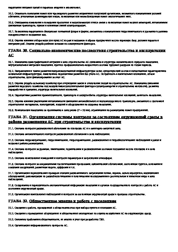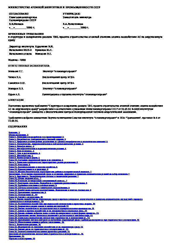 Временные требования к структуре и содержанию раздела ТЭО, проекта строительства атомной станции: оценка воздействия АС на окружа