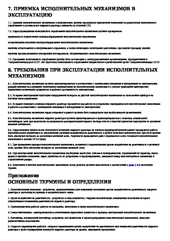 Правила устройства и безопасной эксплуатации исполнительных механизмов органов воздействия на реактивность