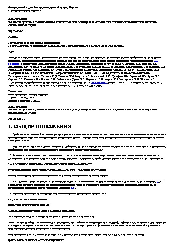 РД 03-410-01: Инструкция по проведению комплексного технического освидетельствования изотермических резервуаров сжиженных газов