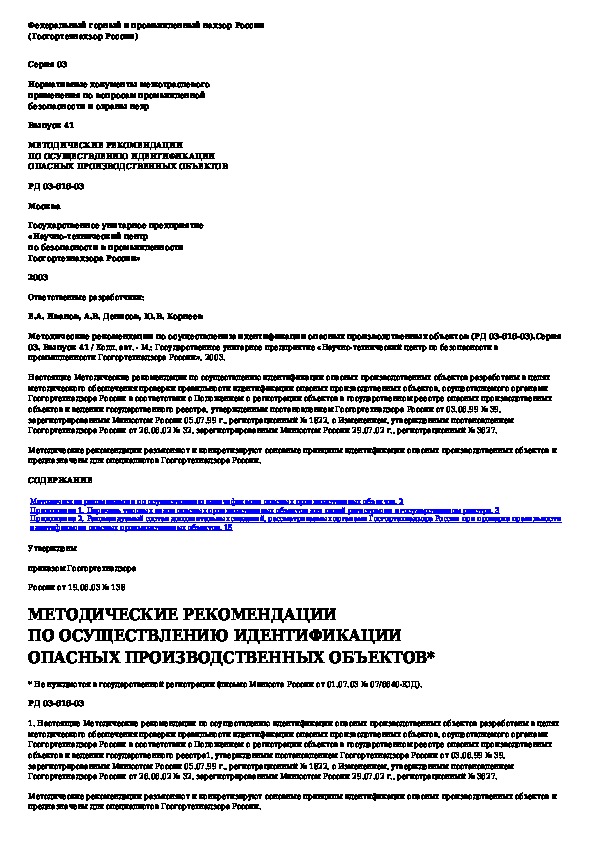 Наша цель состоит в том, чтобы предоставить вам быстрый доступ к содержанию документа Методические рекомендации по осуществлению идентификации опасных производственных объектов.