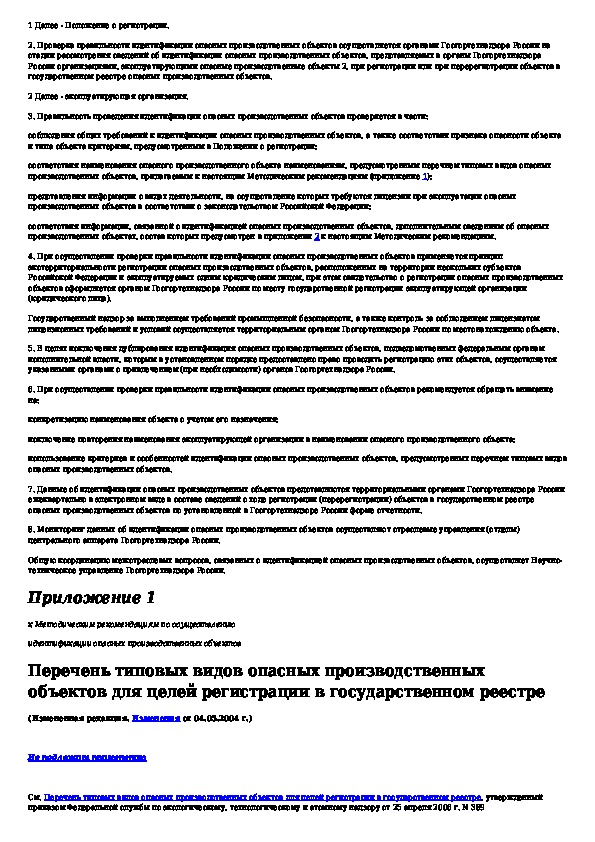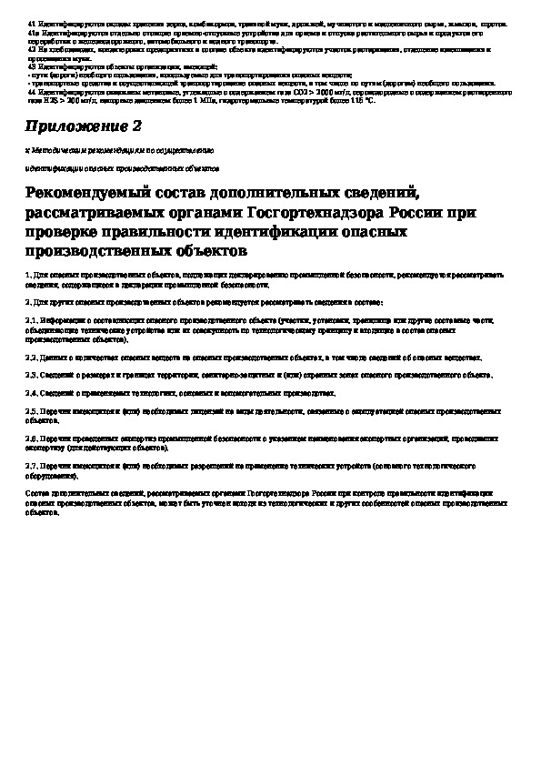 Методические рекомендации по осуществлению идентификации опасных производственных объектов