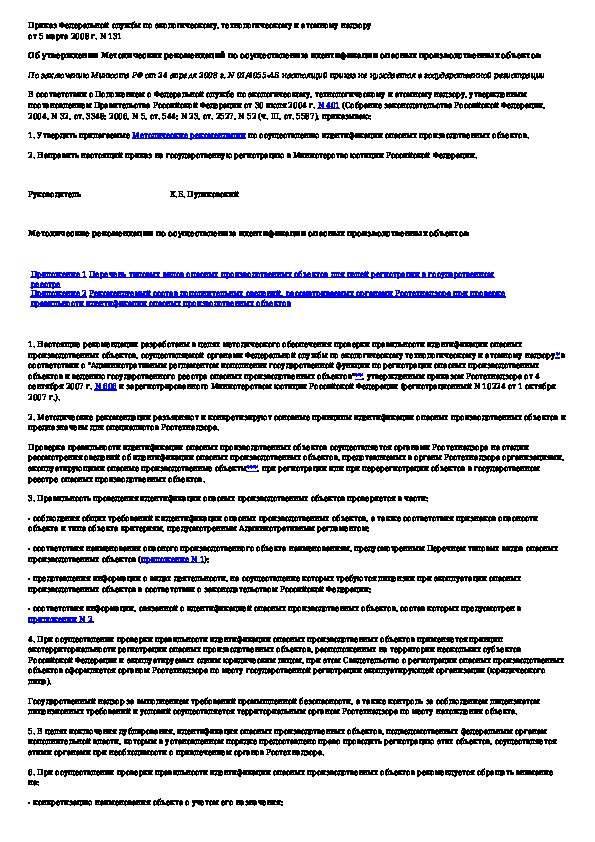 Наша цель состоит в том, чтобы предоставить вам быстрый доступ к содержанию документа Методические рекомендации по осуществлению идентификации опасных производственных объектов.