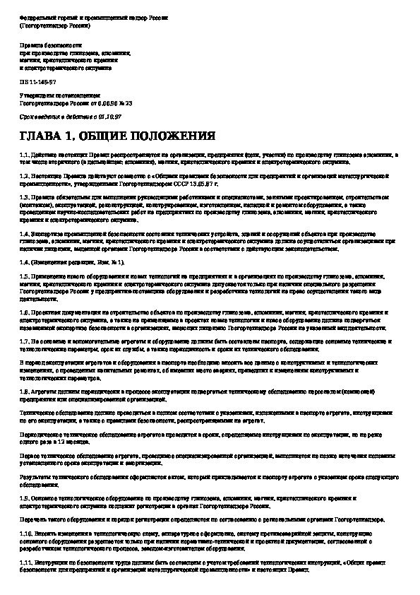 ПБ 11-149-97: Правила безопасности при производстве глинозема, алюминия, магния, кристаллического кремния и электротермического силумина