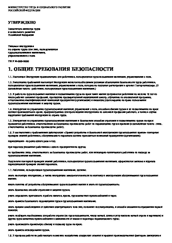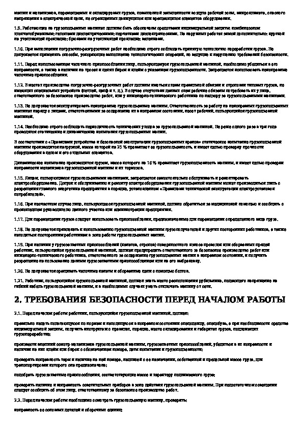 Наша цель состоит в том, чтобы предоставить вам быстрый доступ к содержанию документа Типовая инструкция по охране труда для лиц, пользующихся грузоподъемными машинами, управляемыми с пола.