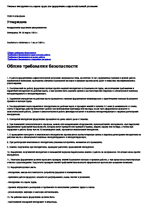 Наша цель состоит в том, чтобы предоставить вам быстрый доступ к содержанию документа Типовая инструкция по охране труда для форсунщика асфальтобетонной установки.