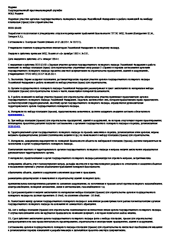 Наша цель состоит в том, чтобы предоставить вам быстрый доступ к содержанию документа Порядок участия органов государственного пожарного надзора РФ в работе комиссий по выбору площадок (трасс) для строительства.