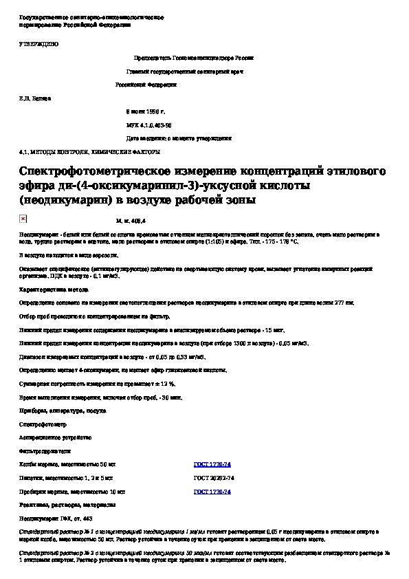 • Просмотр в полноэкранном режиме - легко просмотреть документ Спектрофотометрическое измерение концентраций этилового эфира ди-(4-оксикумаринил-3)-уксусной кислоты (неодикумарин) в воздухе раб (без загрузки его на свой компьютер).
