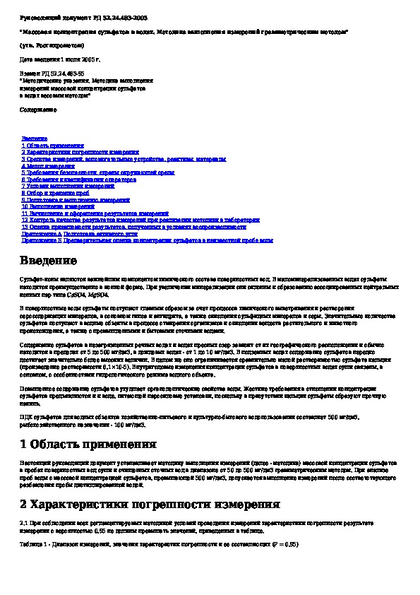 Наша цель состоит в том, чтобы предоставить вам быстрый доступ к содержанию документа Массовая концентрация сульфатов в водах. Методика выполнения измерений гравиметрическим методом.