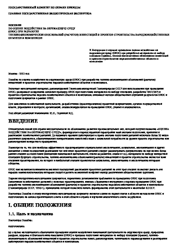 Наша цель состоит в том, чтобы предоставить вам быстрый доступ к содержанию документа Пособие по оценке воздействия на окружающую среду (ОВОС) при разработке технико-экономических обоснований (расчетов) инвестиций и .