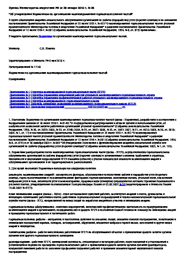 Наша цель состоит в том, чтобы предоставить вам быстрый доступ к содержанию документа Нормативы по организации военизированных горноспасательных частей.