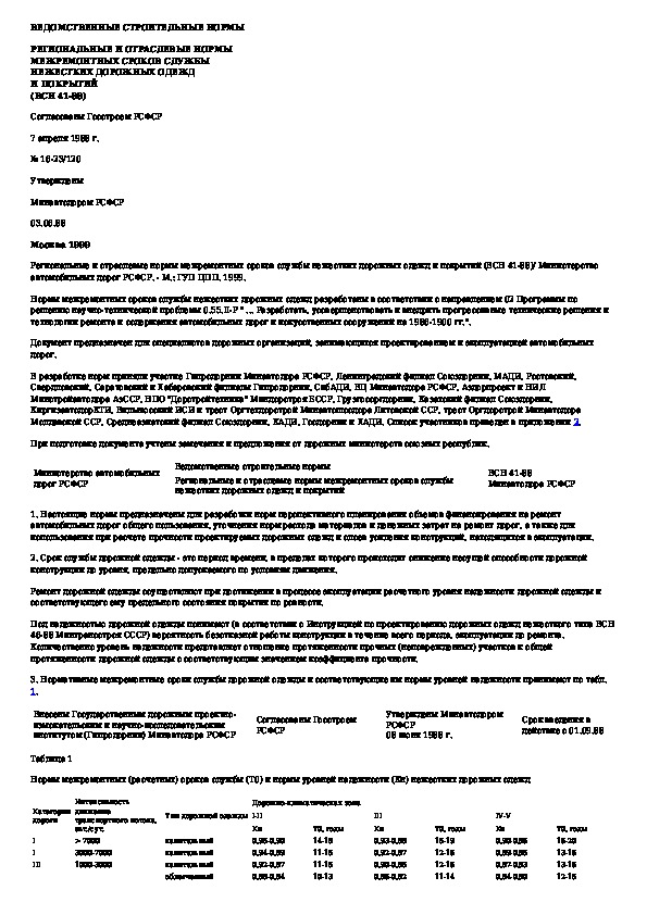 ВСН 41-88: Региональные и отраслевые нормы межремонтных сроков службы нежестких дорожных одежд и покрытий