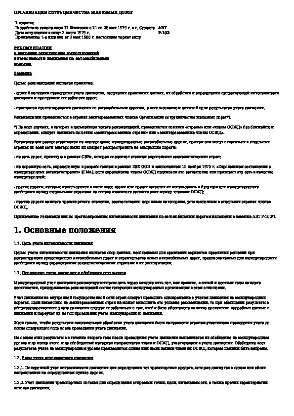 АВТ Р-102: Рекомендации по методике определения существующей интенсивности движения по автомобильным дорогам