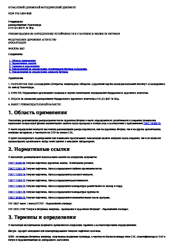 Наша цель состоит в том, чтобы предоставить вам быстрый доступ к содержанию документа Рекомендации по определению устойчивости к старению и вязкости битумов.