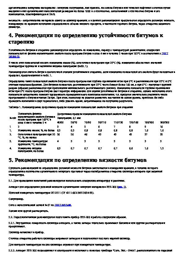 Рекомендации по определению устойчивости к старению и вязкости битумов