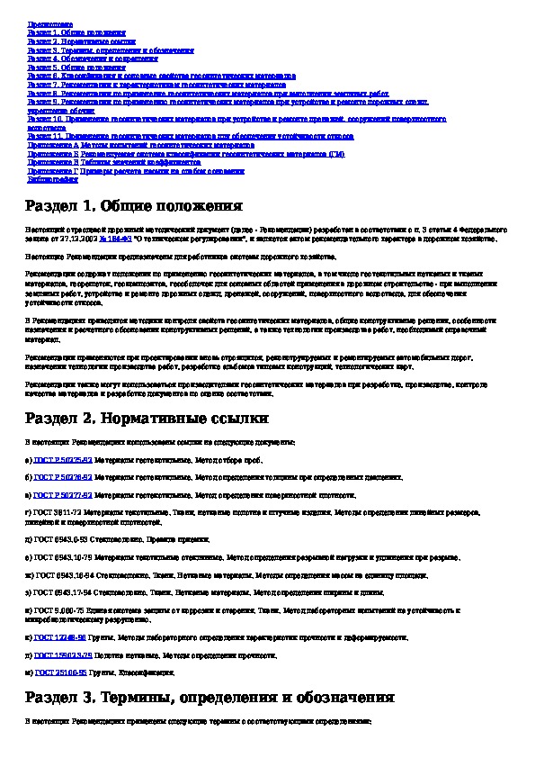 Наша цель состоит в том, чтобы предоставить вам быстрый доступ к содержанию документа Рекомендации по применению геосинтетических материалов при строительстве и ремонте автомобильных дорог.