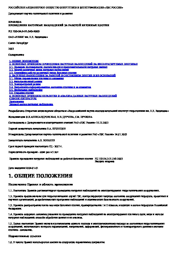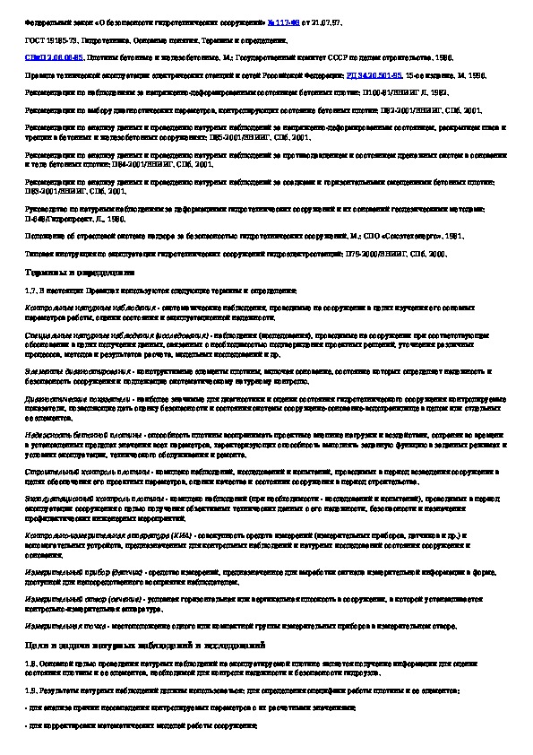Наша цель состоит в том, чтобы предоставить вам быстрый доступ к содержанию документа Правила проведения натурных наблюдений за работой бетонных плотин.