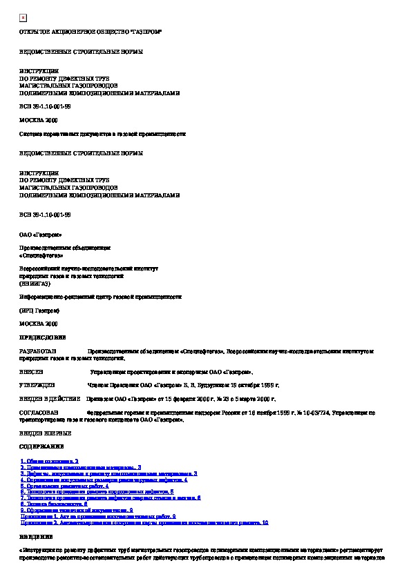 Наша цель состоит в том, чтобы предоставить вам быстрый доступ к содержанию документа Инструкция по ремонту дефектных труб магистральных газопроводов полимерными композиционными материалами.
