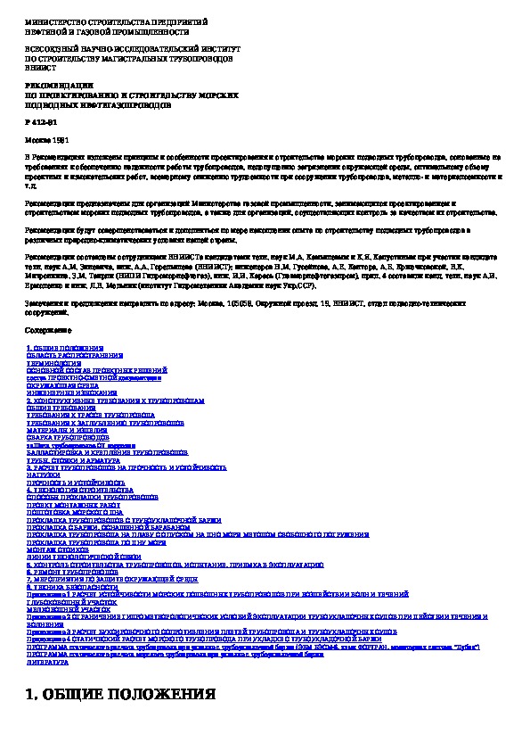 Наша цель состоит в том, чтобы предоставить вам быстрый доступ к содержанию документа Рекомендации по проектированию и строительству морских подводных нефтегазопроводов.