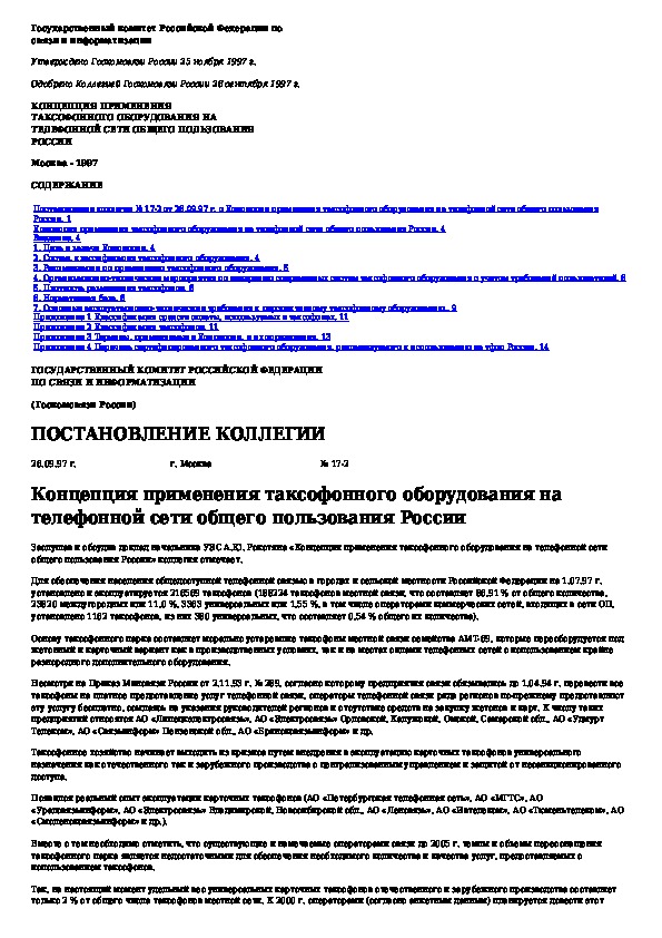 Наша цель состоит в том, чтобы предоставить вам быстрый доступ к содержанию документа Концепция применения таксофонного оборудования на телефонной сети общего пользования России.
