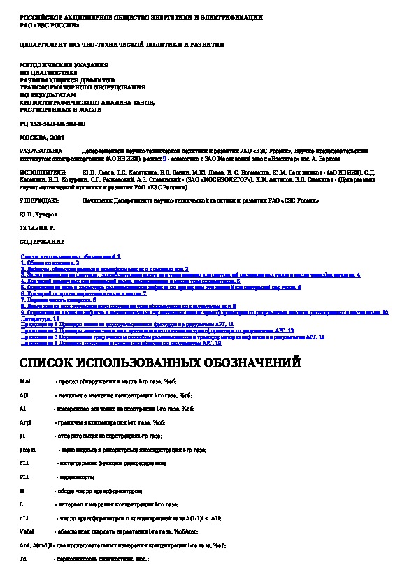 РД 153-34.0-46.302-00: Методические указания по диагностике развивающихся дефектов трансформаторного оборудования по результатам хроматографического