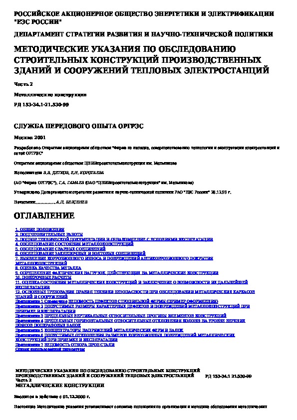 Наша цель состоит в том, чтобы предоставить вам быстрый доступ к содержанию документа Методические указания по обследованию строительных конструкций производственных зданий и сооружений тепловых электростанций. Ч.