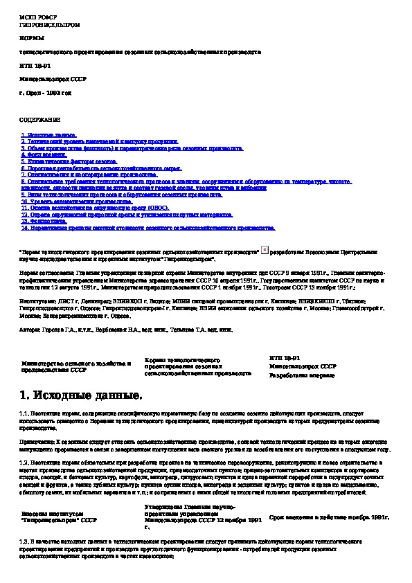 Наша цель состоит в том, чтобы предоставить вам быстрый доступ к содержанию документа Нормы технологического проектирования сезонных сельскохозяйственных производств.