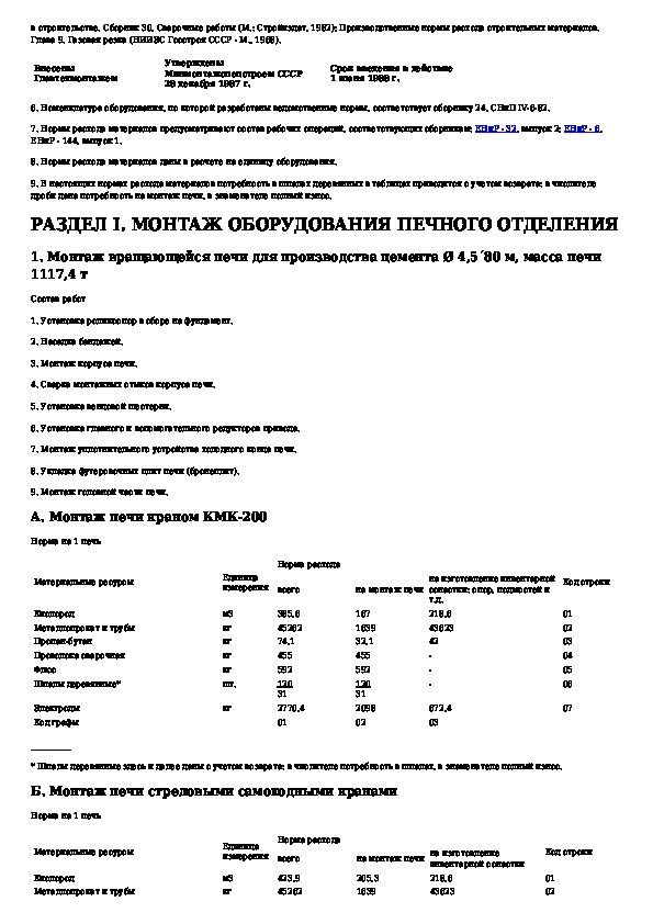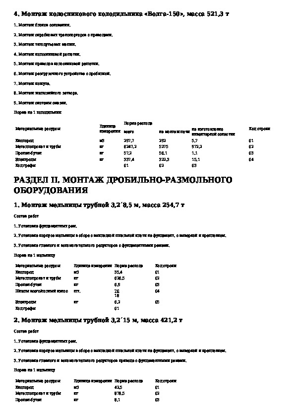 Ведомственные производственные нормы расхода материалов на монтажные и специальные строительные работы. Монтаж технологическог