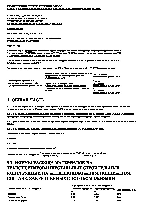 Ведомственные производственные нормы расхода материалов на монтажные и специальные строительные работы. Нормы расхода материало