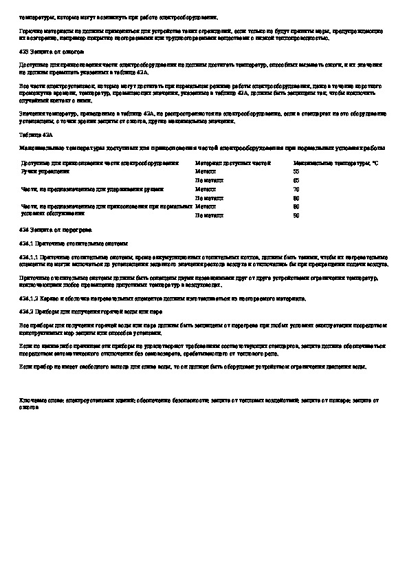 Электроустановки зданий. Часть 4. Требования по обеспечению безопасности. Защита от тепловых воздействий