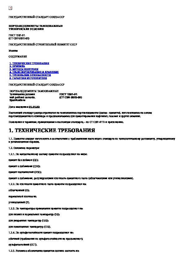 ГОСТ 1581-91: Портландцементы тампонажные. Технические условия