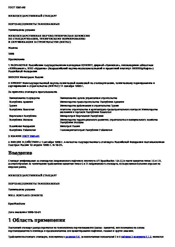ГОСТ 1581-96: Портландцементы тампонажные. Технические условия