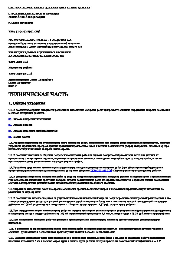 ТЕРр 2001-62 СПб: Малярные работы