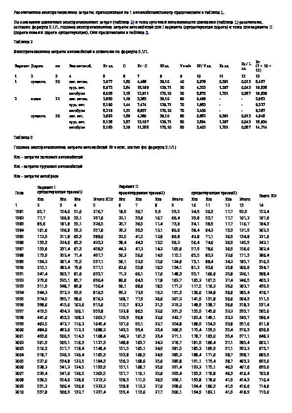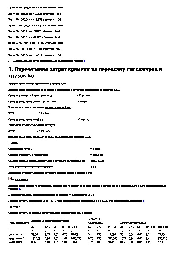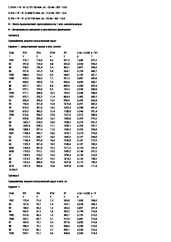 Дополнения к рекомендациям по расчету экономической эффективности капитальных вложений в дорожном строительстве. Расчетные прим
