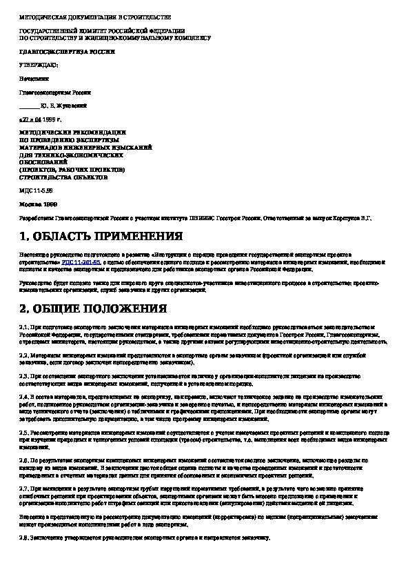 МДС 11-5.99: Методические рекомендации по проведению экспертизы материалов инженерных изысканий для технико-экономических обоснований (прое