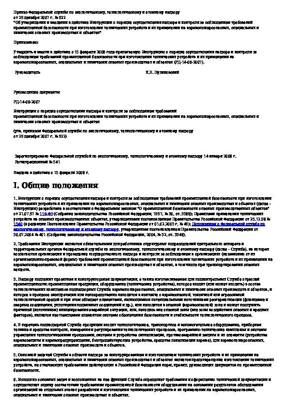 • Загрузка на компьютер - Вы можете также скачать Инструкция о порядке осуществления надзора и контроля за соблюдением требований промышленной безопасности при изготовлении техн на свой компьютер и сохранить его в файлах.