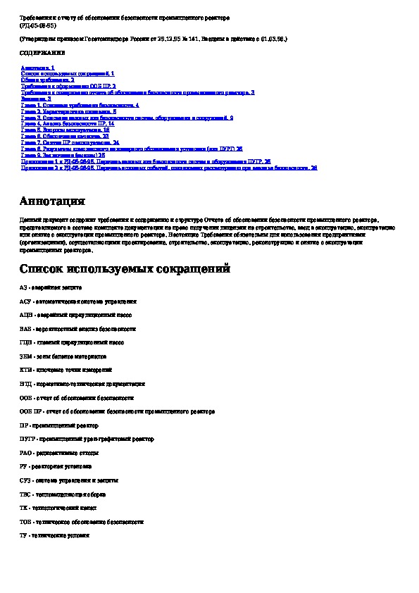 Наша цель состоит в том, чтобы предоставить вам быстрый доступ к содержанию документа Требования к отчету об обосновании безопасности промышленного реактора.