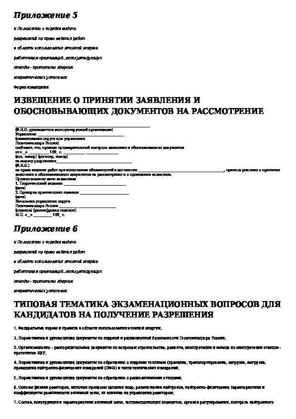 Положение о порядке выдачи разрешений на право ведения работ в области использования атомной энергии работникам организаций, экс