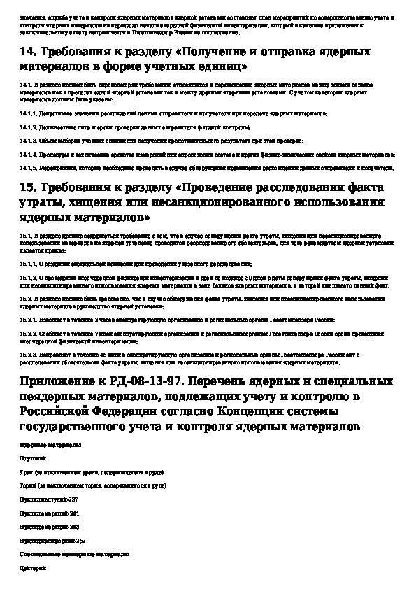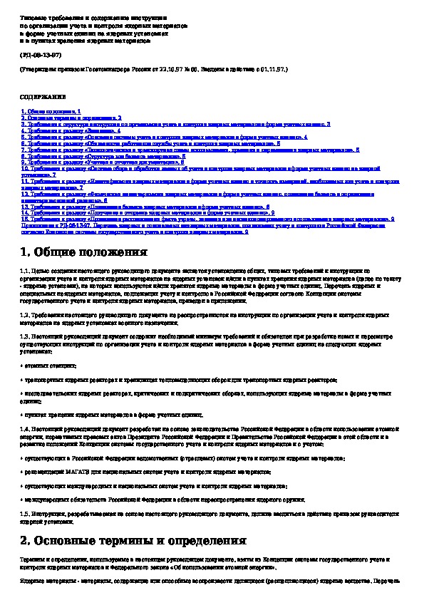 РД 08-13-97: Типовые требования к содержанию инструкции по организации учета и контроля ядерных материалов в форме учетных единиц на ядерных у
