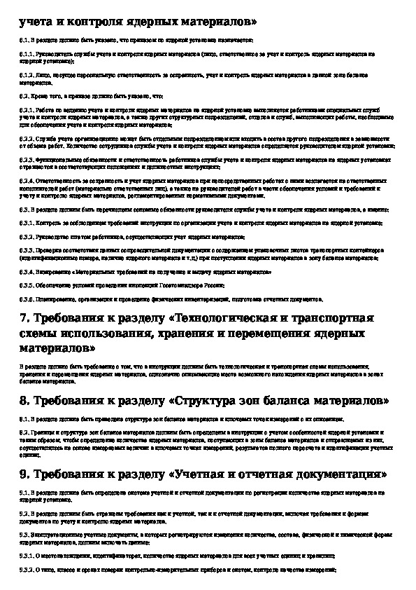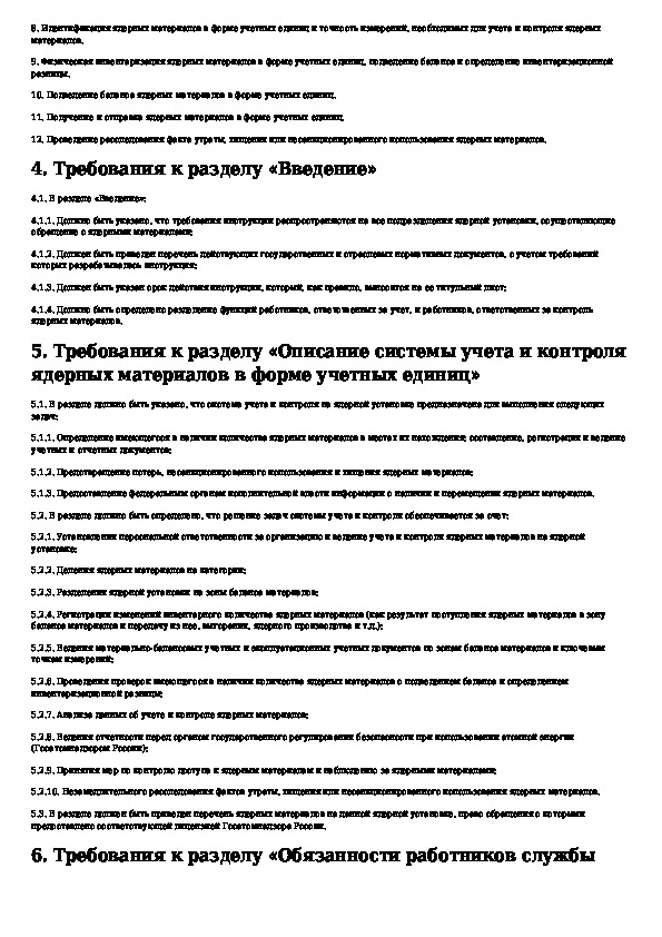 Типовые требования к содержанию инструкции по организации учета и контроля ядерных материалов в форме учетных единиц на ядерных у
