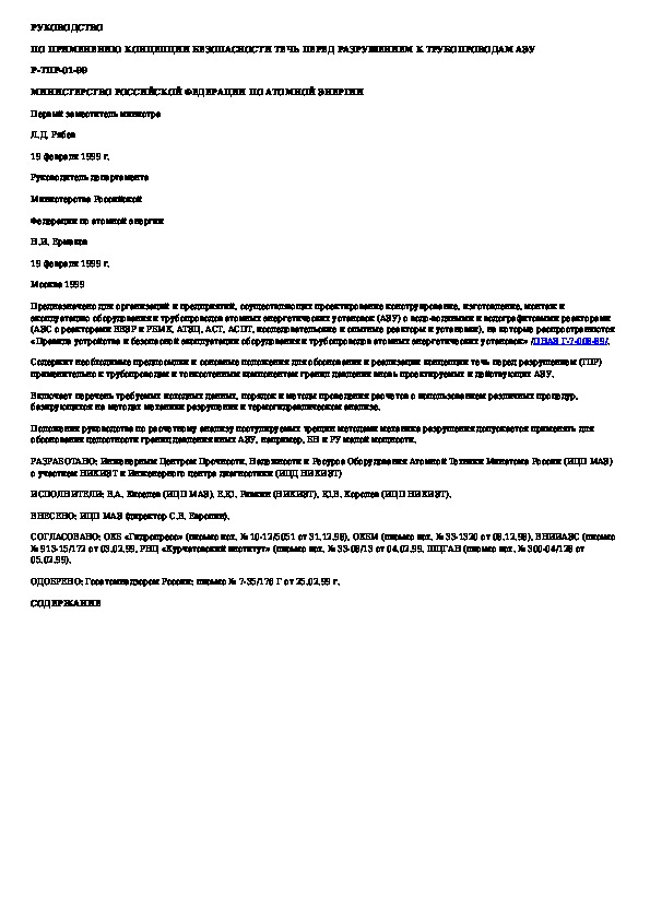 Наша цель состоит в том, чтобы предоставить вам быстрый доступ к содержанию документа Руководство по применению концепции безопасности течь перед разрушением к трубопроводам АЭУ.