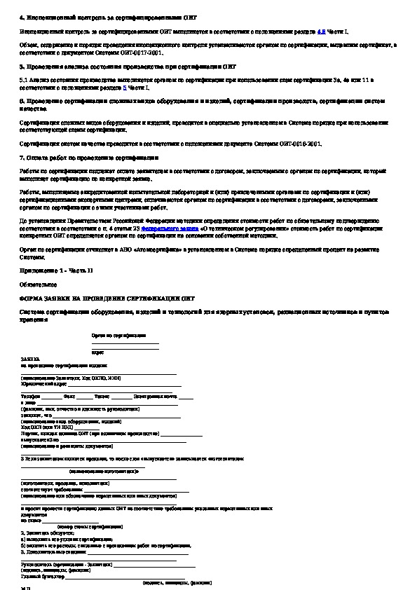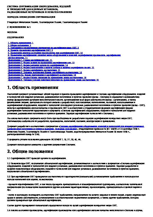 Система сертификации оборудования, изделий и технологий для ядерных установок, радиационных источников и пунктов хранения. Поряд