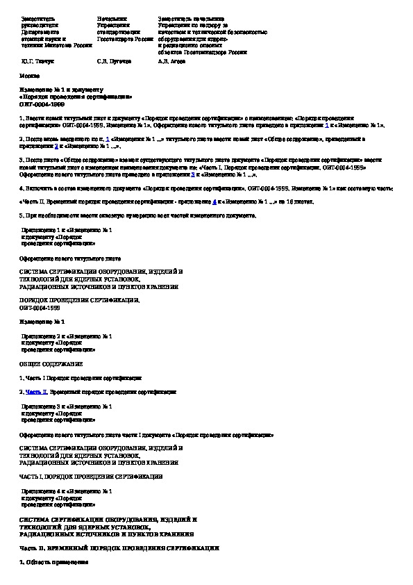 Наша цель состоит в том, чтобы предоставить вам быстрый доступ к содержанию документа Система сертификации оборудования, изделий и технологий для ядерных установок, радиационных источников и пунктов хранения. Поряд.