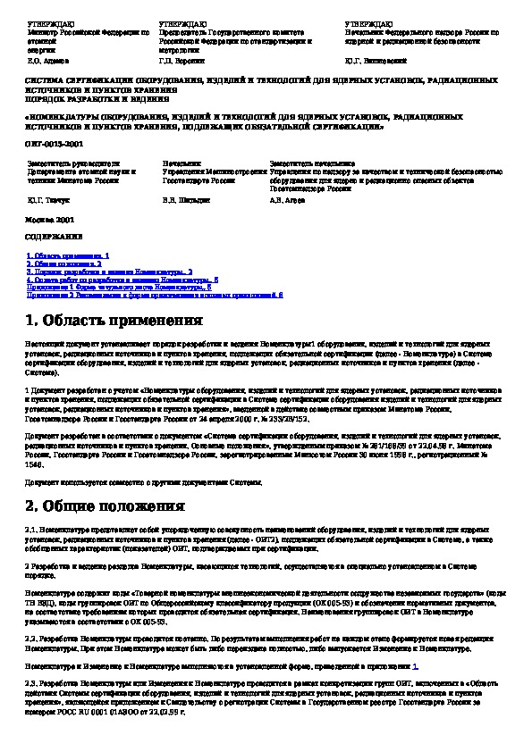 Система сертификации оборудования, изделий и технологий для ядерных установок, радиационных источников и пунктов хранения. Поряд