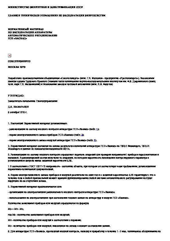 Наша цель состоит в том, чтобы предоставить вам быстрый доступ к содержанию документа Нормативный материал по эксплуатации аппаратуры автоматического регулирования ГСП "Каскад".