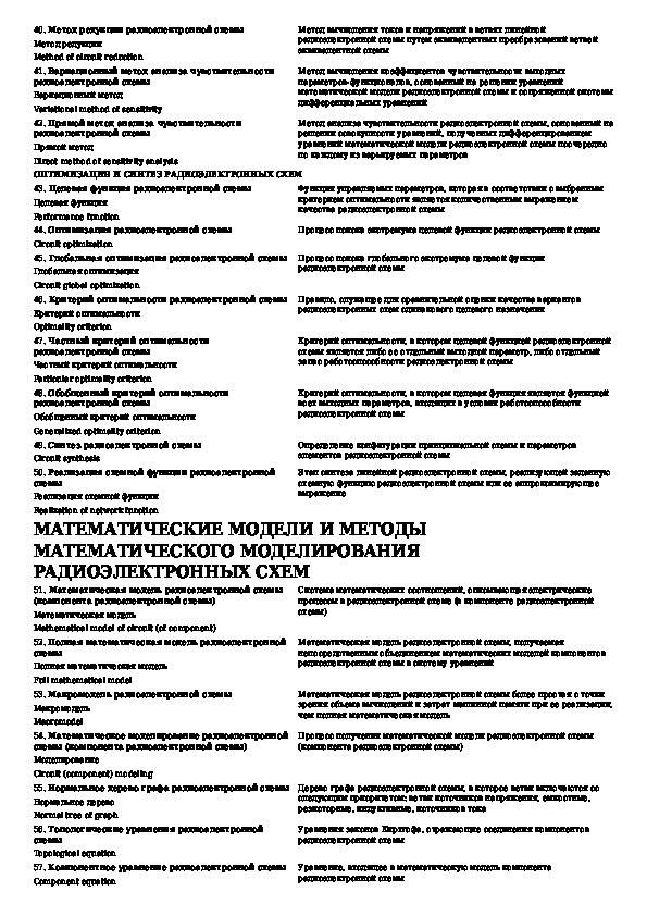 Анализ и оптимизация на ЭВМ радиоэлектронных схем. Термины и определения