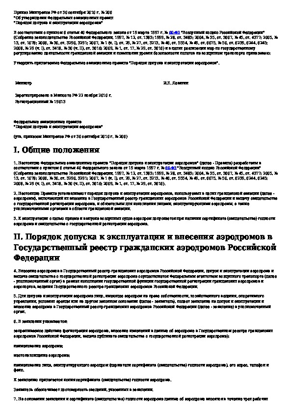 Федеральные авиационные правила "Порядок допуска к эксплуатации аэродромов"