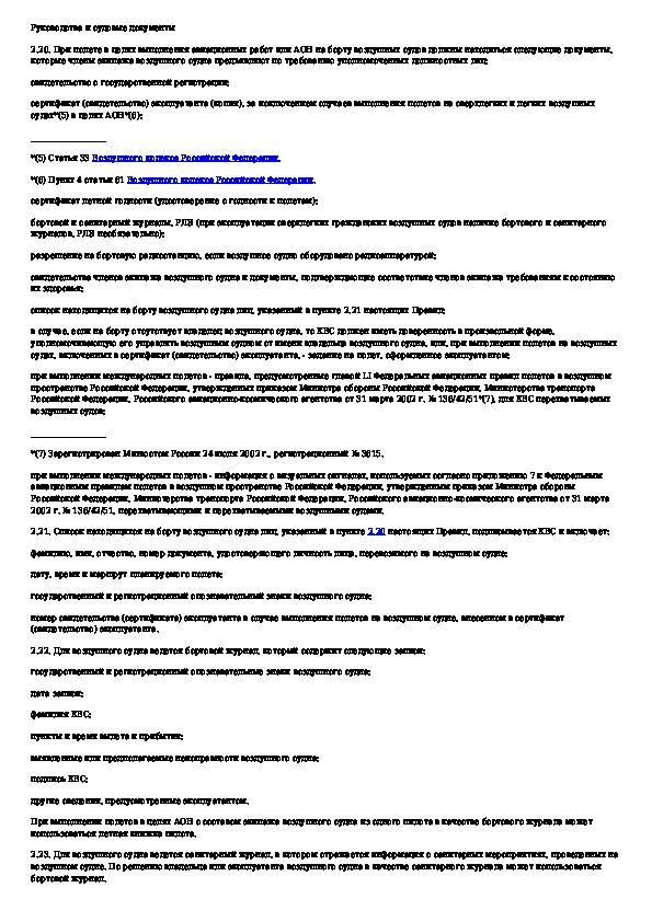 Федеральные авиационные правила "Подготовка и выполнение полетов в гражданской авиации Российской Федерации"
